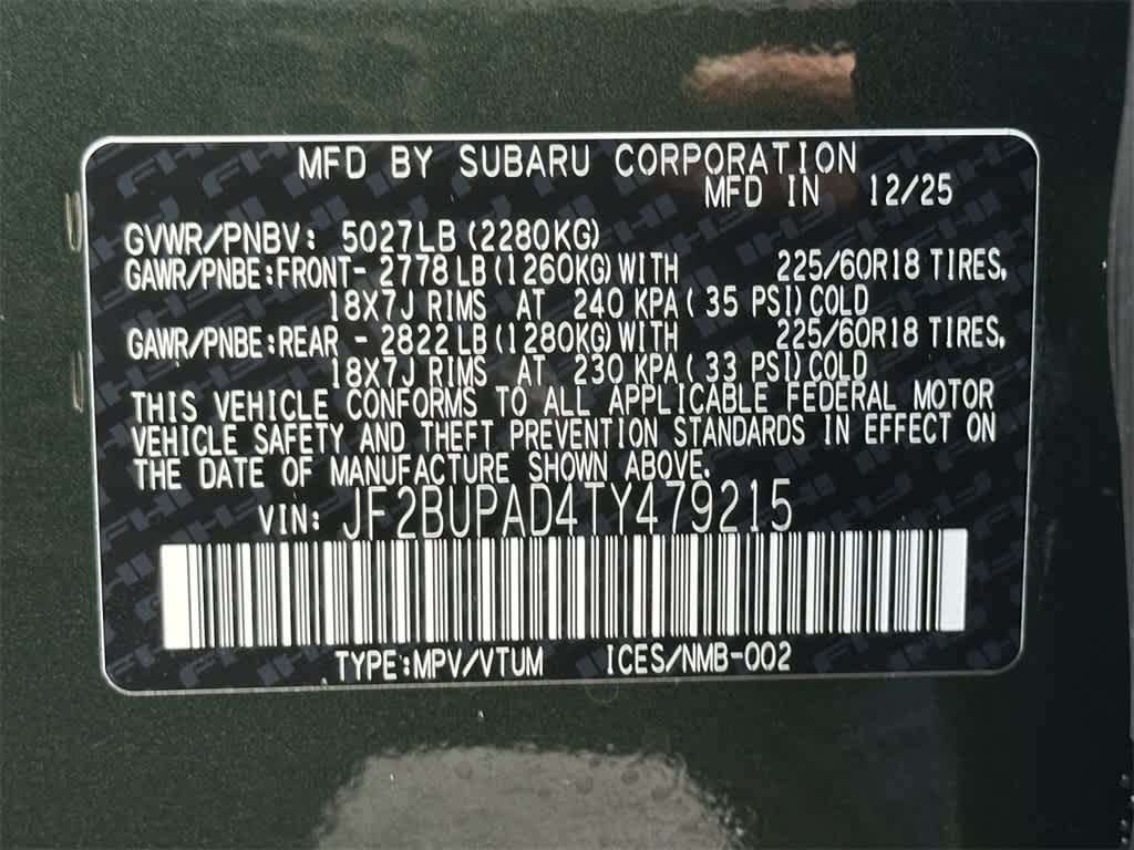 Diablo Subaru of Walnut Creek is pleased to present for sale this 2026 Subaru Outback Premium as part of our hand-selected new vehicle lineup. This vehicle is finished in the Deep Emerald Green Pearl exterior paint and Titanium Gray interior. Other factory options include: CVT Lineartronic 2.5L 4-Cylinder DOHC 16V